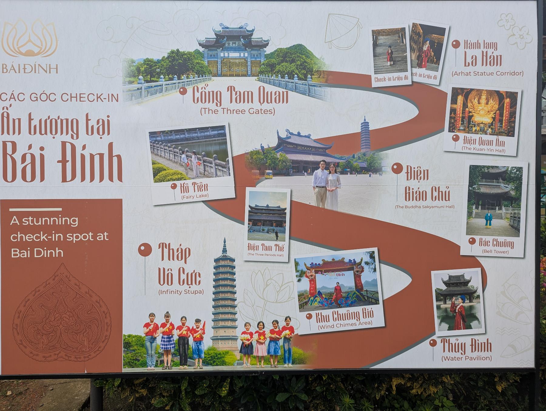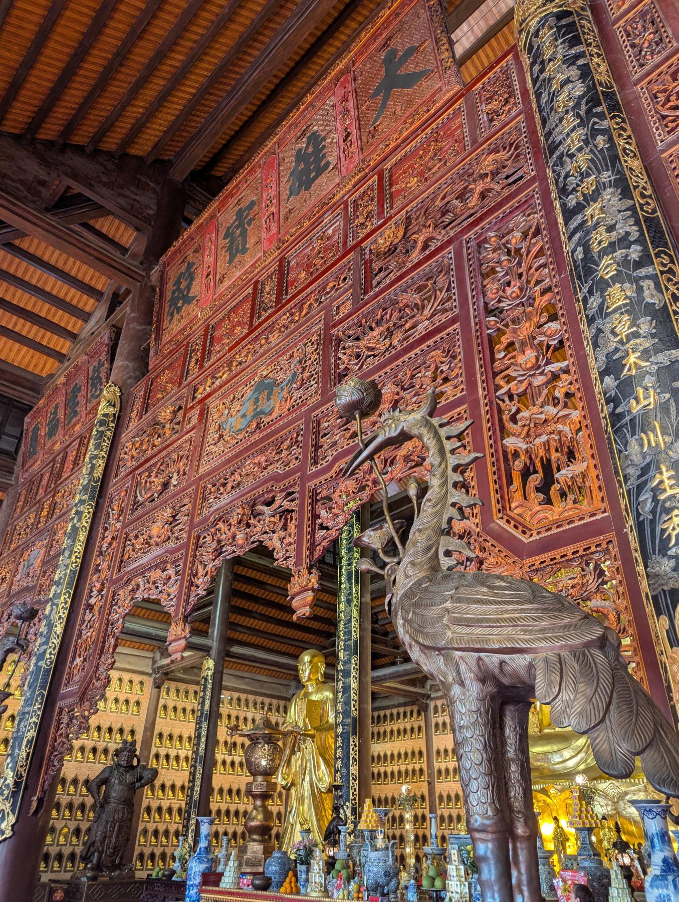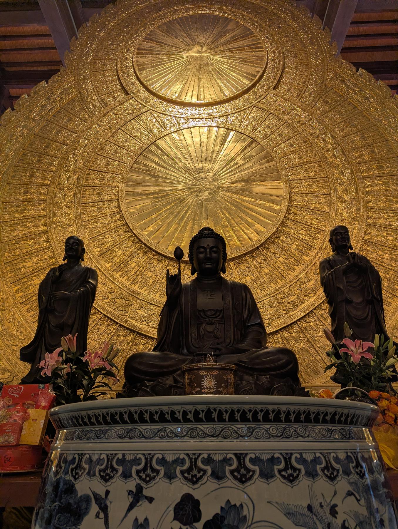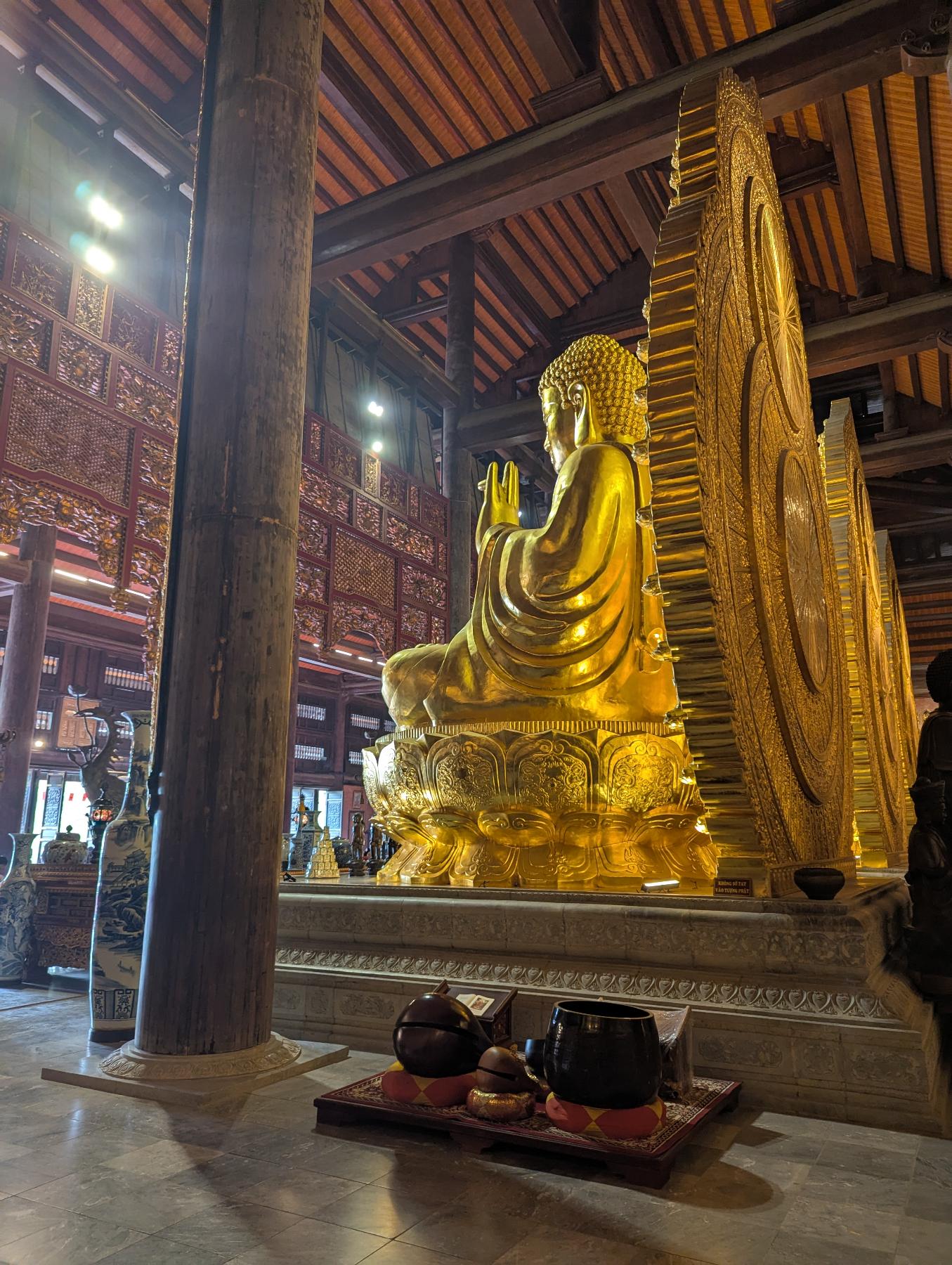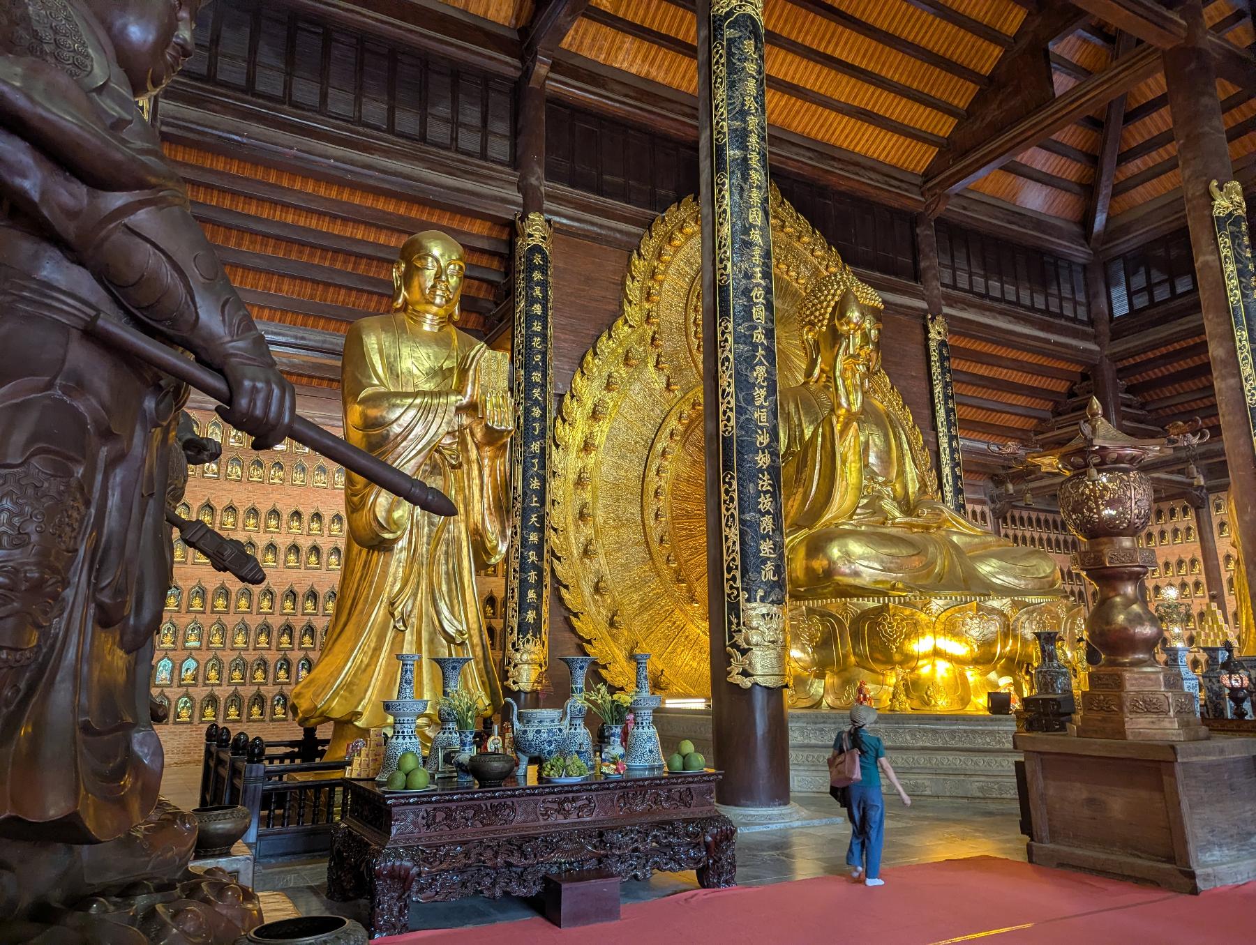 Para empezar vamos hasta lo más alejado, Bai Dinh. El complejo de la Pagoda Bai Dinh es un lugar que combina la espiritualidad con la arquitectura monumental en un entorno natural rodeado de lagos y formaciones calizas. Es el centro budista más grande de Vietnam y uno de los más importantes del sudeste asiático. Hay una zona más antigua y otra más reciente.