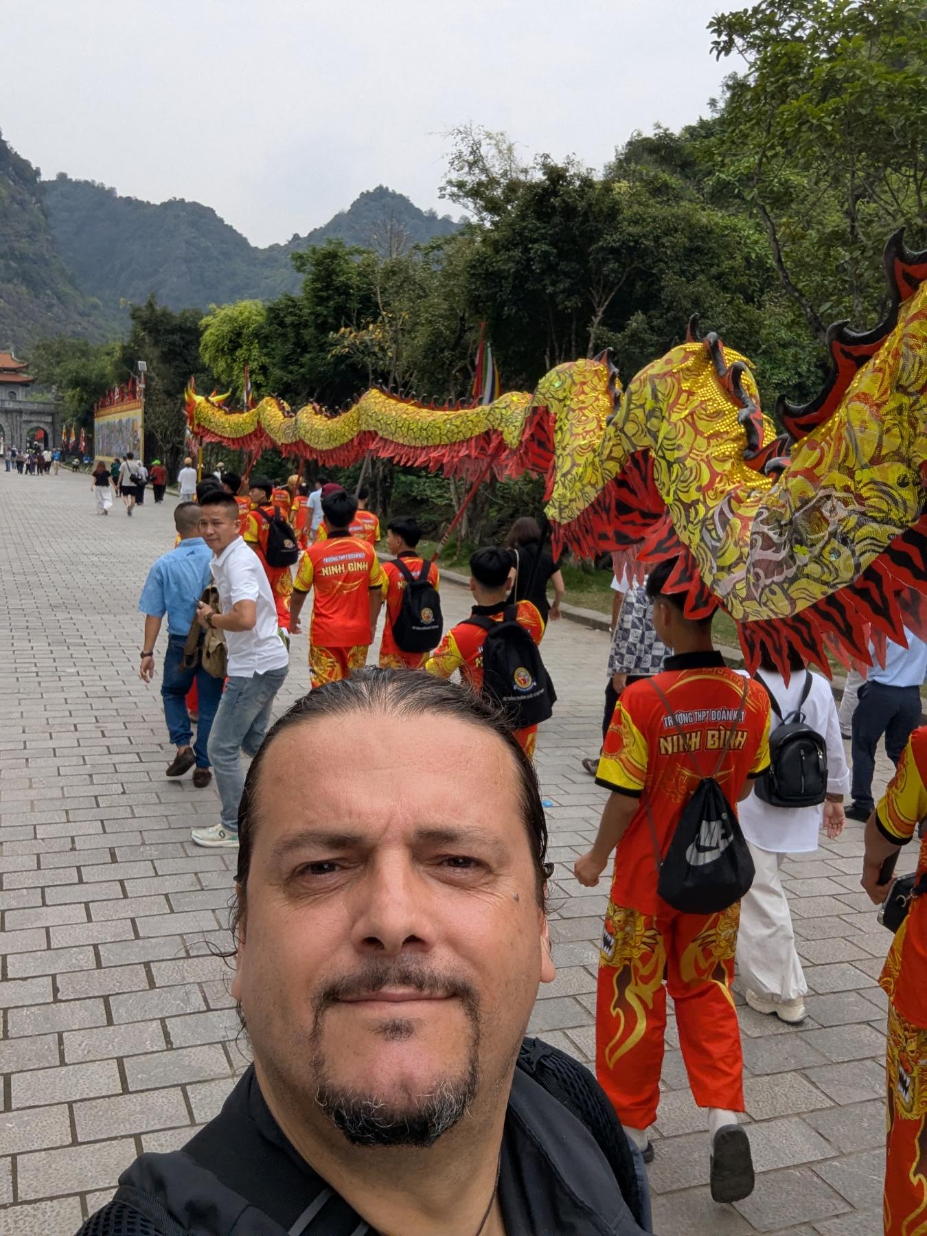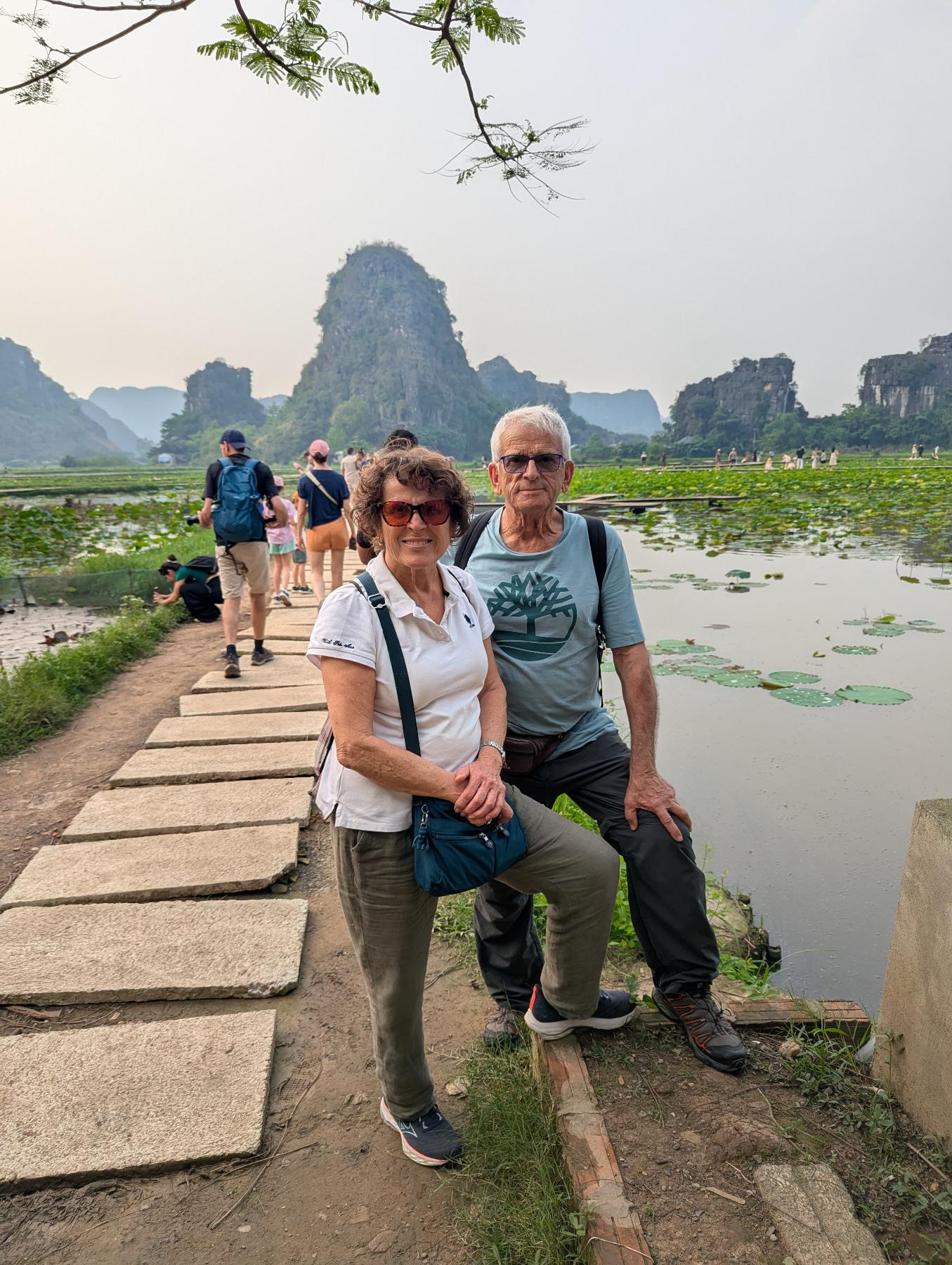 Después de las fotos bajamos muy ligeritos, adelantando gente… mi padre no se distancia ni un metro, en nada estamos abajo. Llamo a mi madre a su móvil y ahora si responde… bufff… pensamos mi padre y yo… mal rollo … Quedamos con mi madre a la entrada. Según nos acercamos mi padre le pregunta si tiene el móvil, a la par que yo llamo… suena en el bolso… bufff… que bien! Al parecer se quedo con el durante el lio del circuito de barcas en Trang An… respiramos alividados…