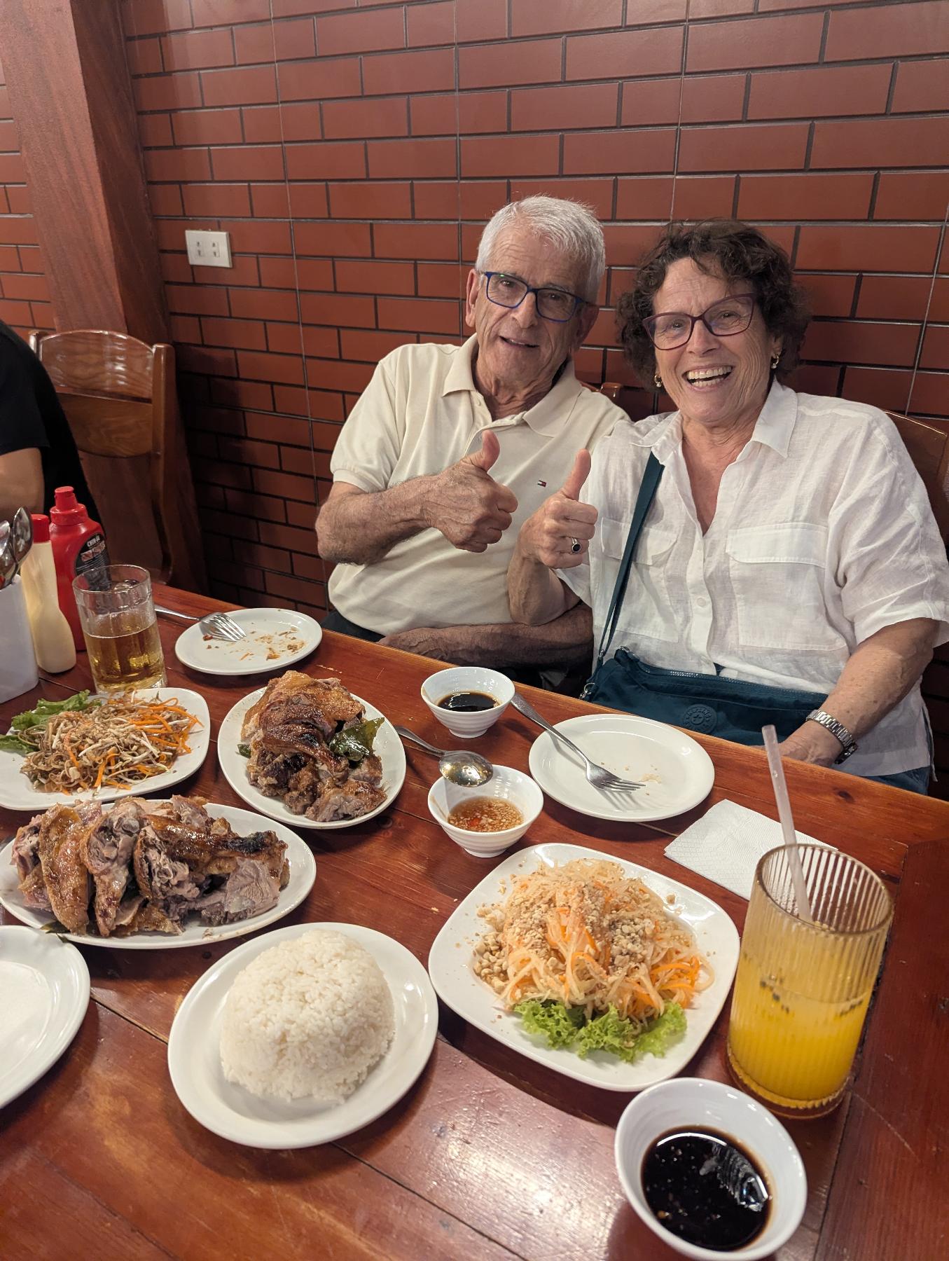 Poco antes de las 20:00 nos vamos a por nuestro pato! Donde ayer sin dudarlo, pero en vez de una ración, 2 (pato entero) y 2 ensaladas (flor de plátano y papaya verde). Nos ponemos como el kiko… hay hambre y está buenísimo todo… pero hemos comido tan poco que nos quedamos perfectos.