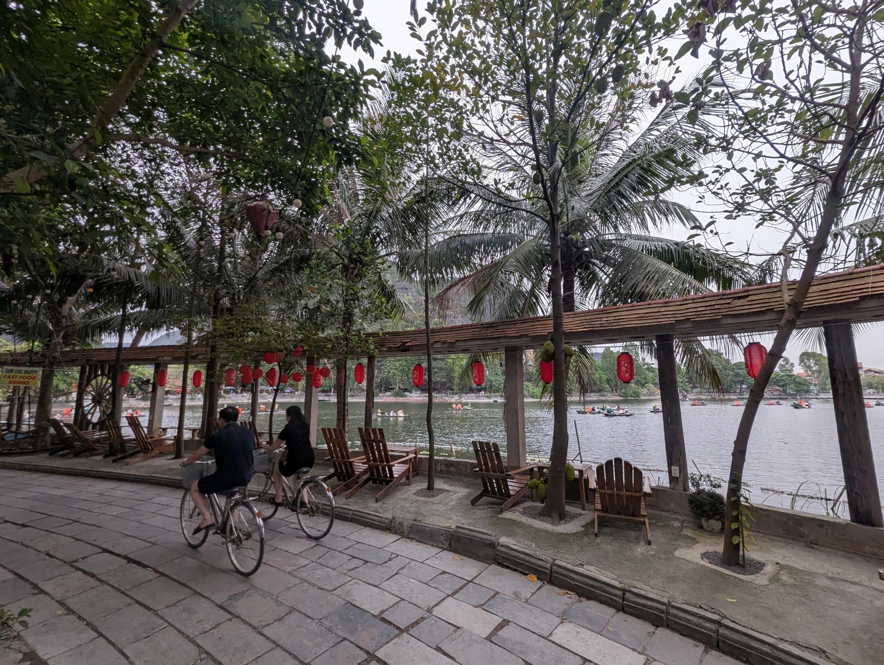 Antes de que salgan, acompaño a mis padres al homestay de al lado donde cambian dinero. El cambio es peor que en Hanoi, un 2,5%, pero mejor que algunos cajeros y ahora no nos podemos arriesgar a quedarnos sin dinero. Cambian los euros que les quedaba, lo cual es un alivio, pues tampoco tiene sentido ir paseando dinero de más.