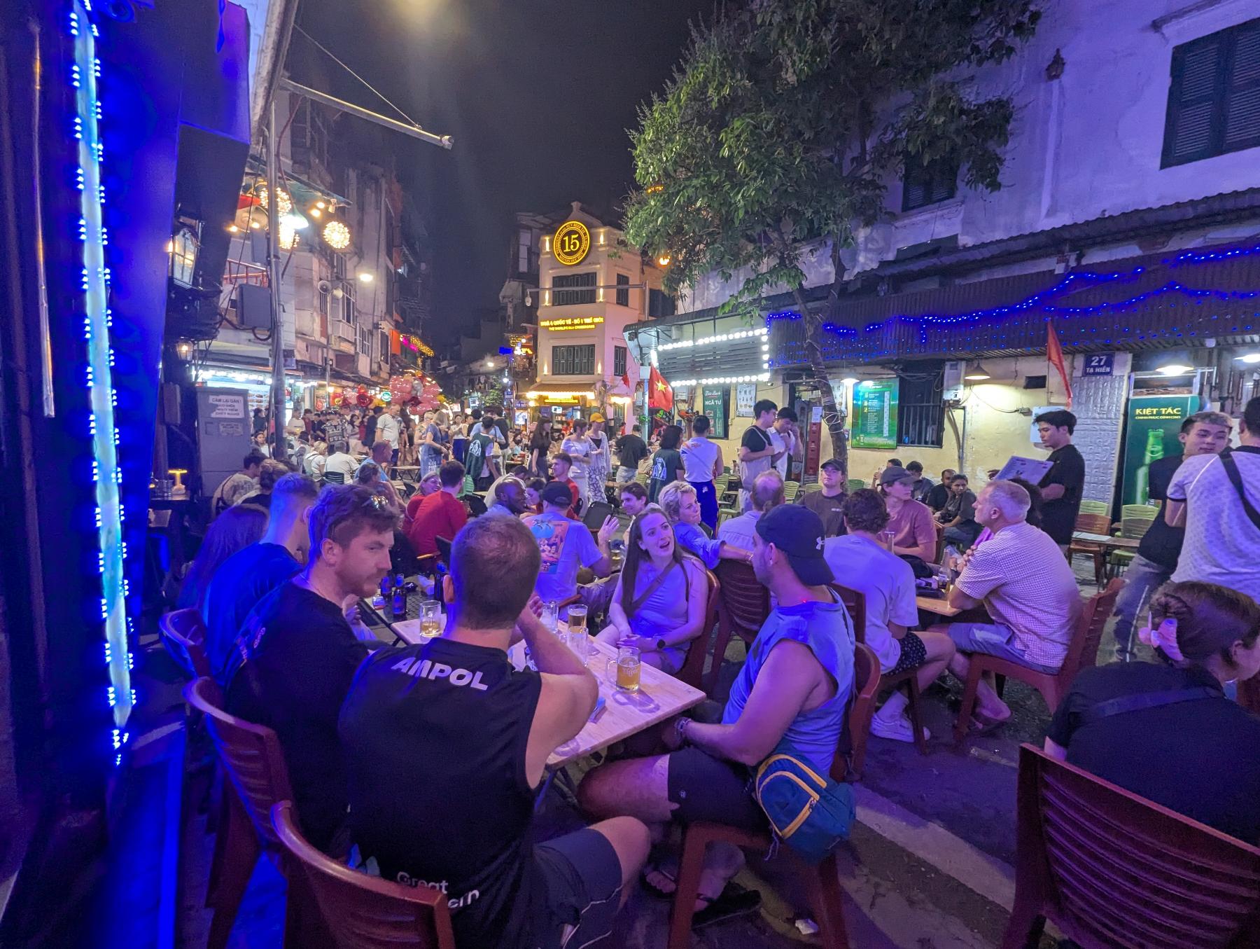 Pensaba ahorrarme el pateo a Old Quarter, pero ya hice parte mientras hablaba con mi madre y en realidad casi que prefiero caminar y relajarme un poco. Sobre las 20:00 llego a mi terraza de cabecera, a tirarme por encima un par de jarrones de cerveza… me relajo mientras escribo el tramo que me faltaba desde que llegué a la habitación. Son las 21:30, voy a revisar las fotos y suelto el móvil para disfrutar de esta deliciosa sarna con sumo gusto…