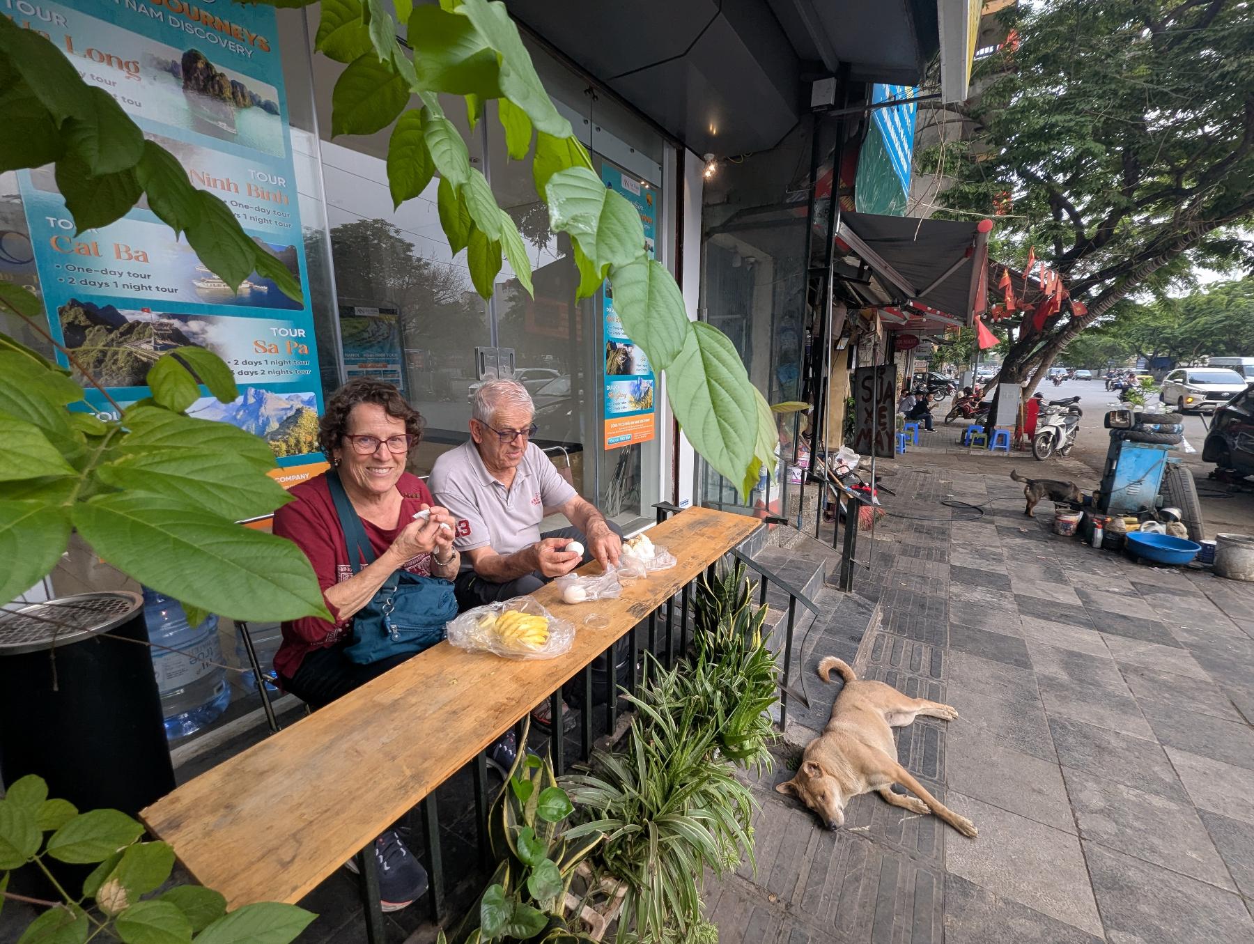 Bien! Tenemos casi 3 horas para la salida del siguiente bus a Ha Long Bay. En lo que nos recomponemos y pensamos en el siguiente paso se hace de día. Aquí amanece a las 5:30. Me preocupa la gestión de la pasta. Ayer hice cuentas y me he gastado 250€ en la primera semana. No me queda mucho así que debo sacar y mis padres deberían. Ya lo tenía en mente y había encontrado un cajero cercano, así que ese fue mi primer paso… en falso, pues pasta no dispensaba…