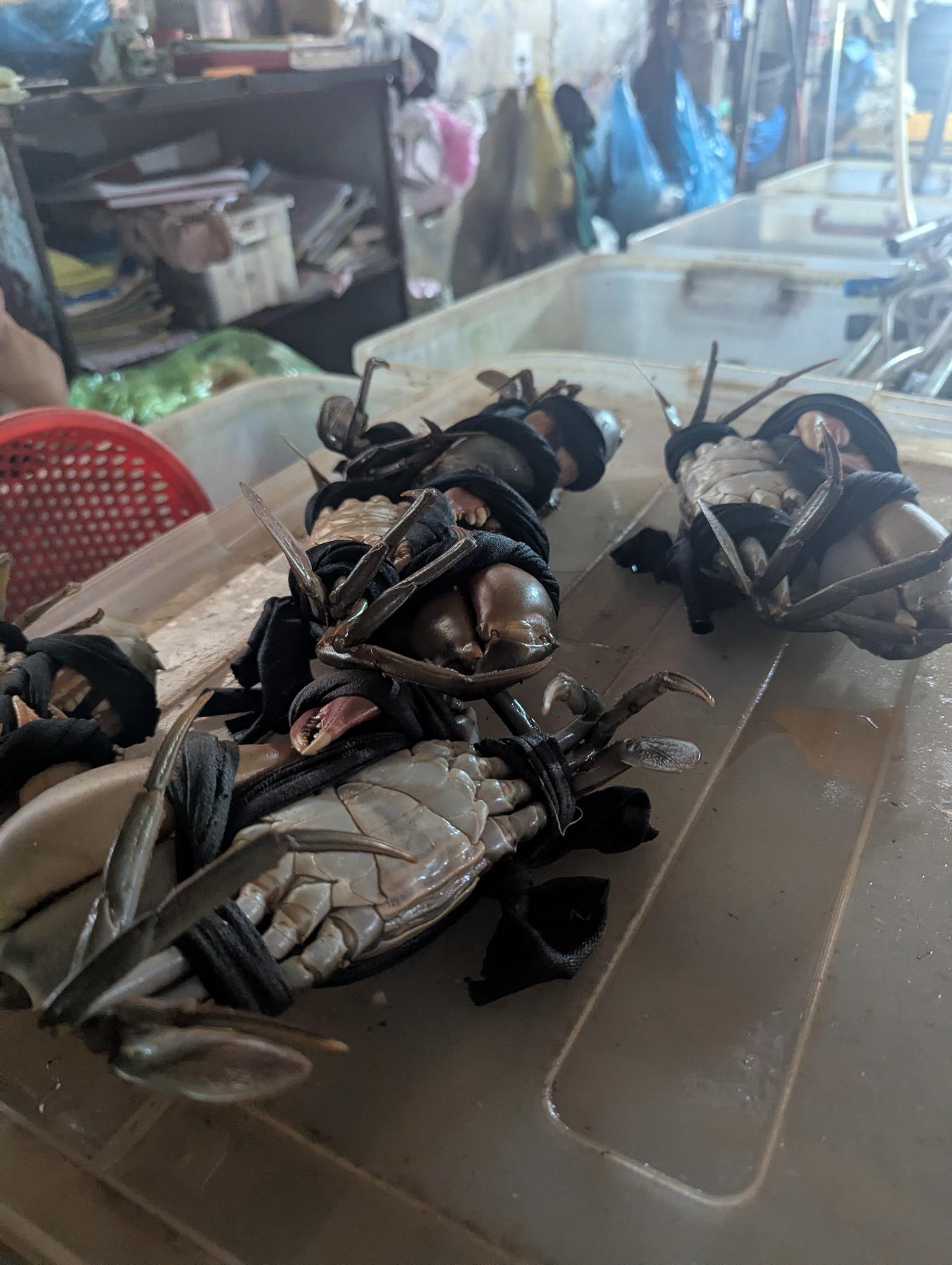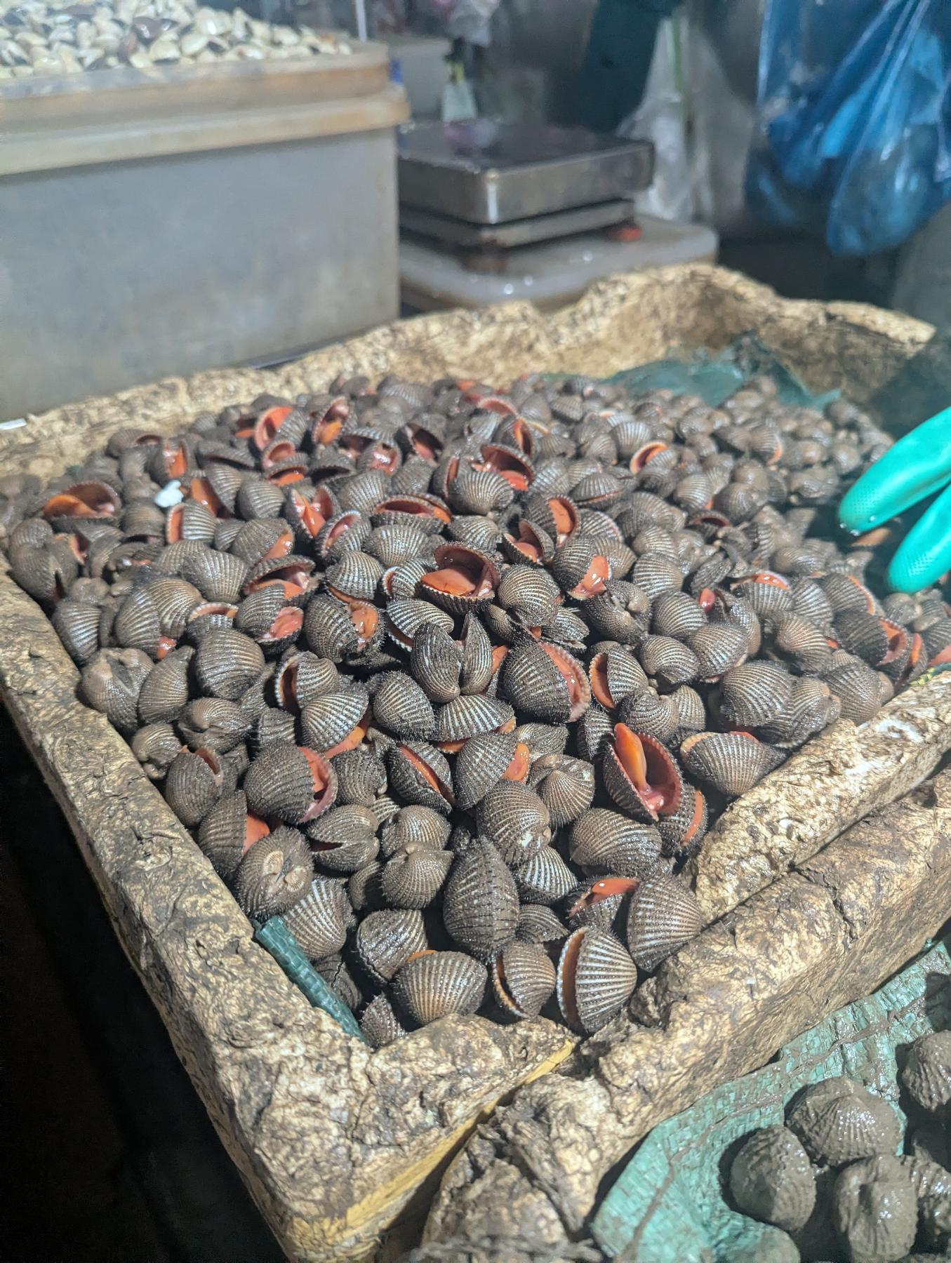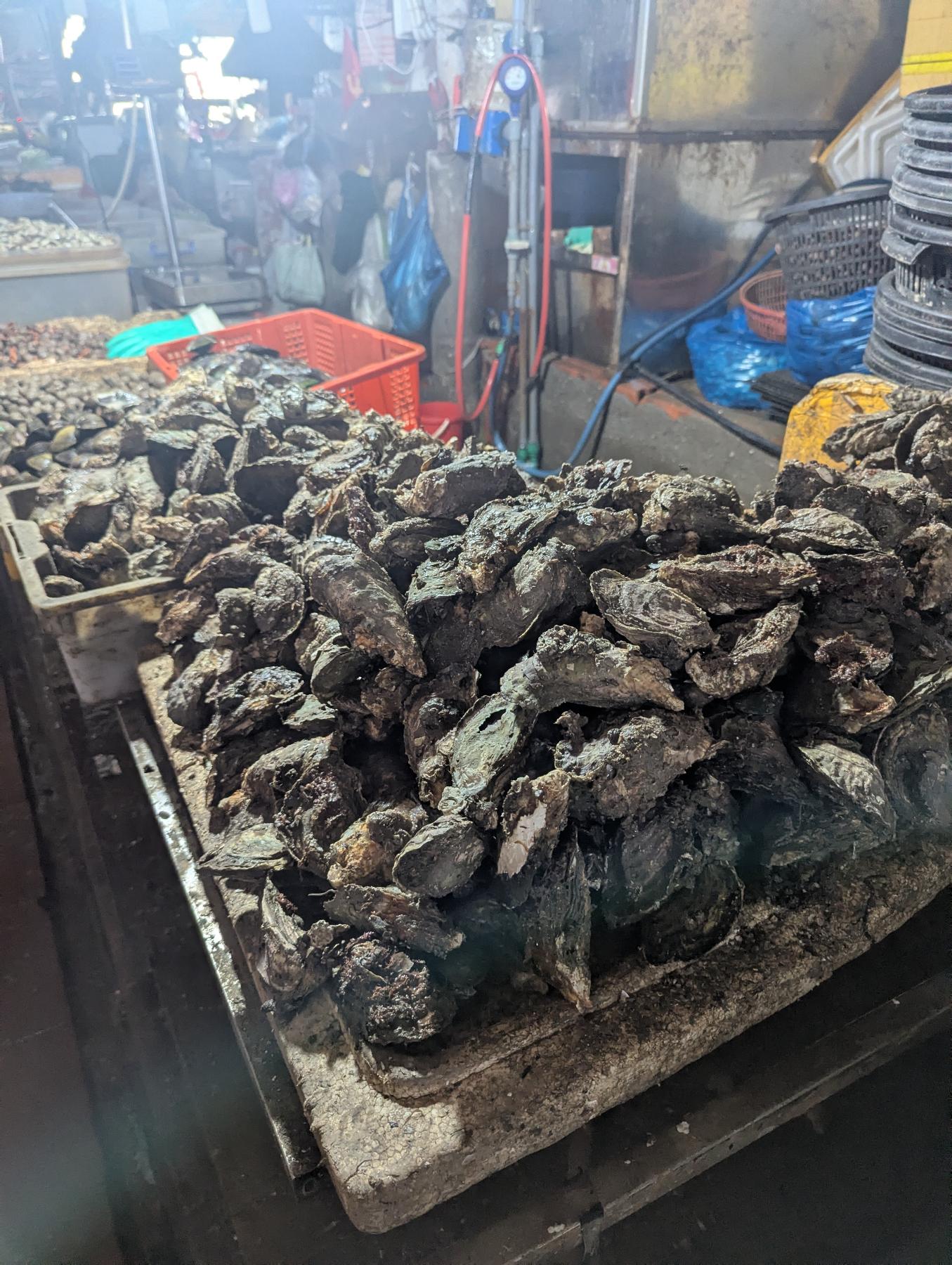 No tengo ni idea de que rumbo tomar. A la izquierda veo algo que puede ser un mercado, y lo es. Lo recorremos de forma vaga, está claro que las horas intensas han pasado. En muchos puestos, la persona de marras, duerme a pierna suelta en un lateral. Aún así un mercado es un mercado y este por ejemplo está a tope de marisco. Mi madre compra longán, que yo confundo con el lichi, pero por fuera es mas pequeño y marron (el lichi es más rojizo) y menos afrutado. Yo compro rambután para que lo pruebe que no lo conoce. Recuerdo que estudiando indonesio, me sorprendí al aprender la palabra «pelo», rambut… de donde viene el nombre de la fruta ya que es como un lichi grande y peludo.