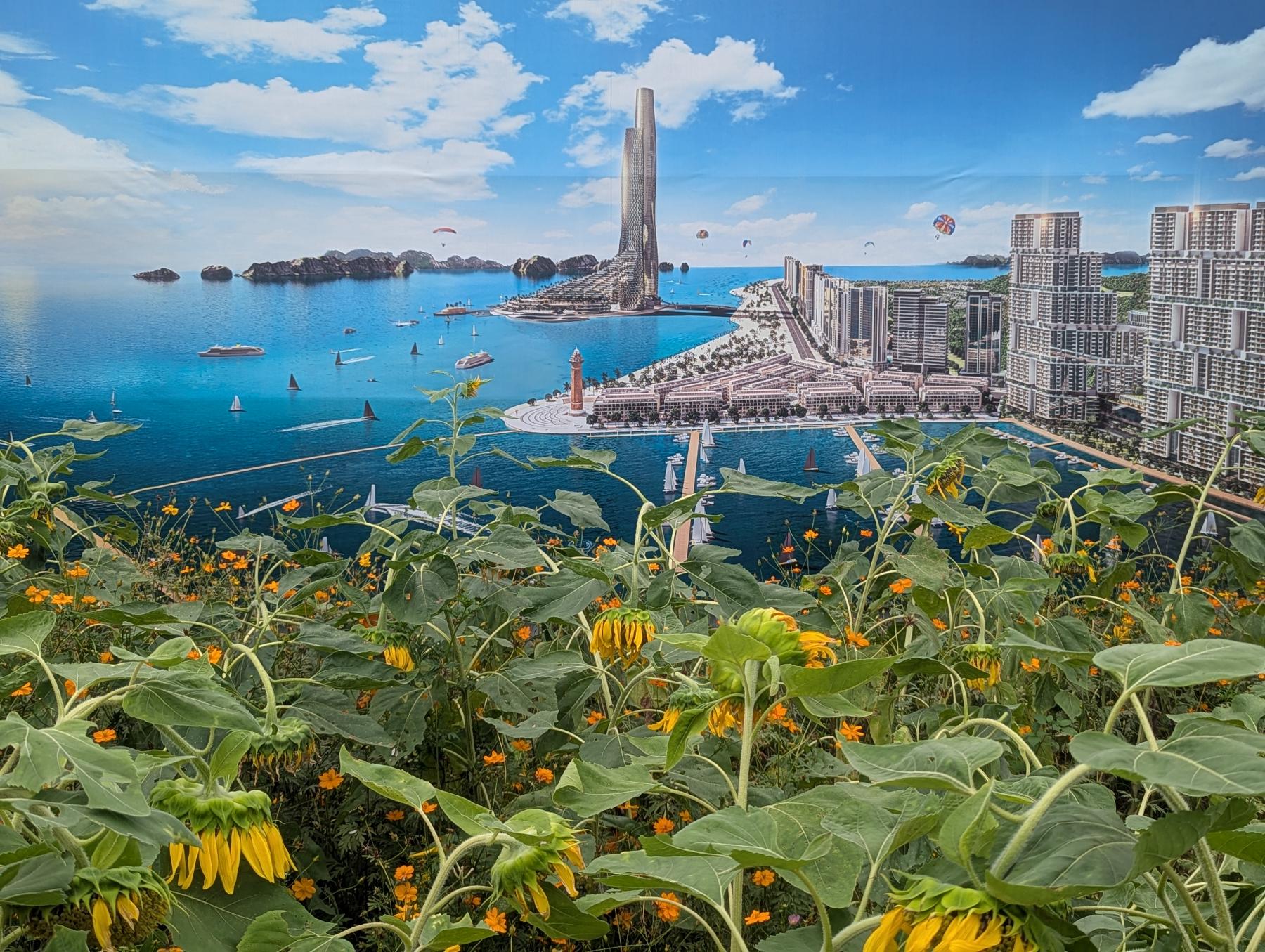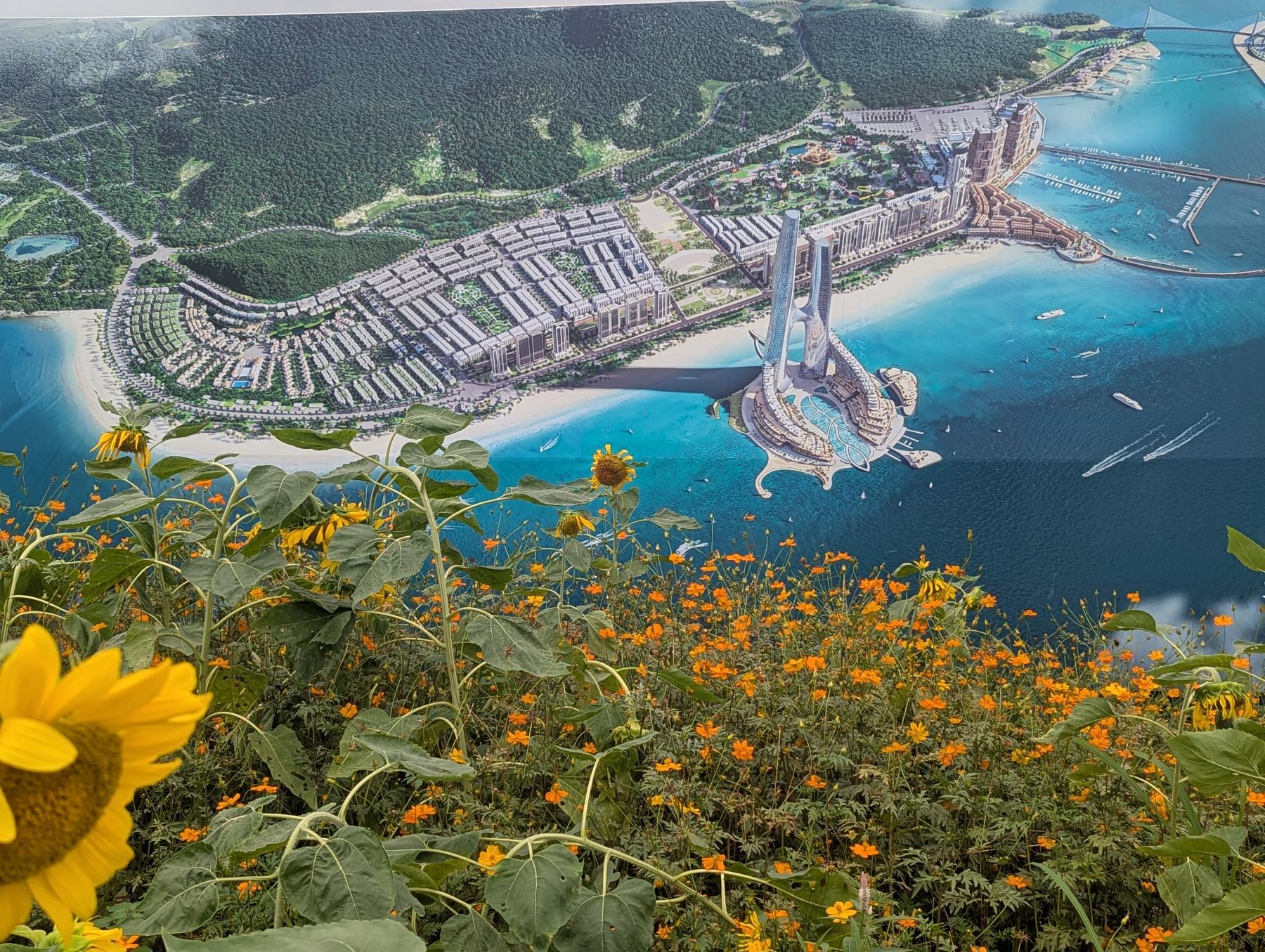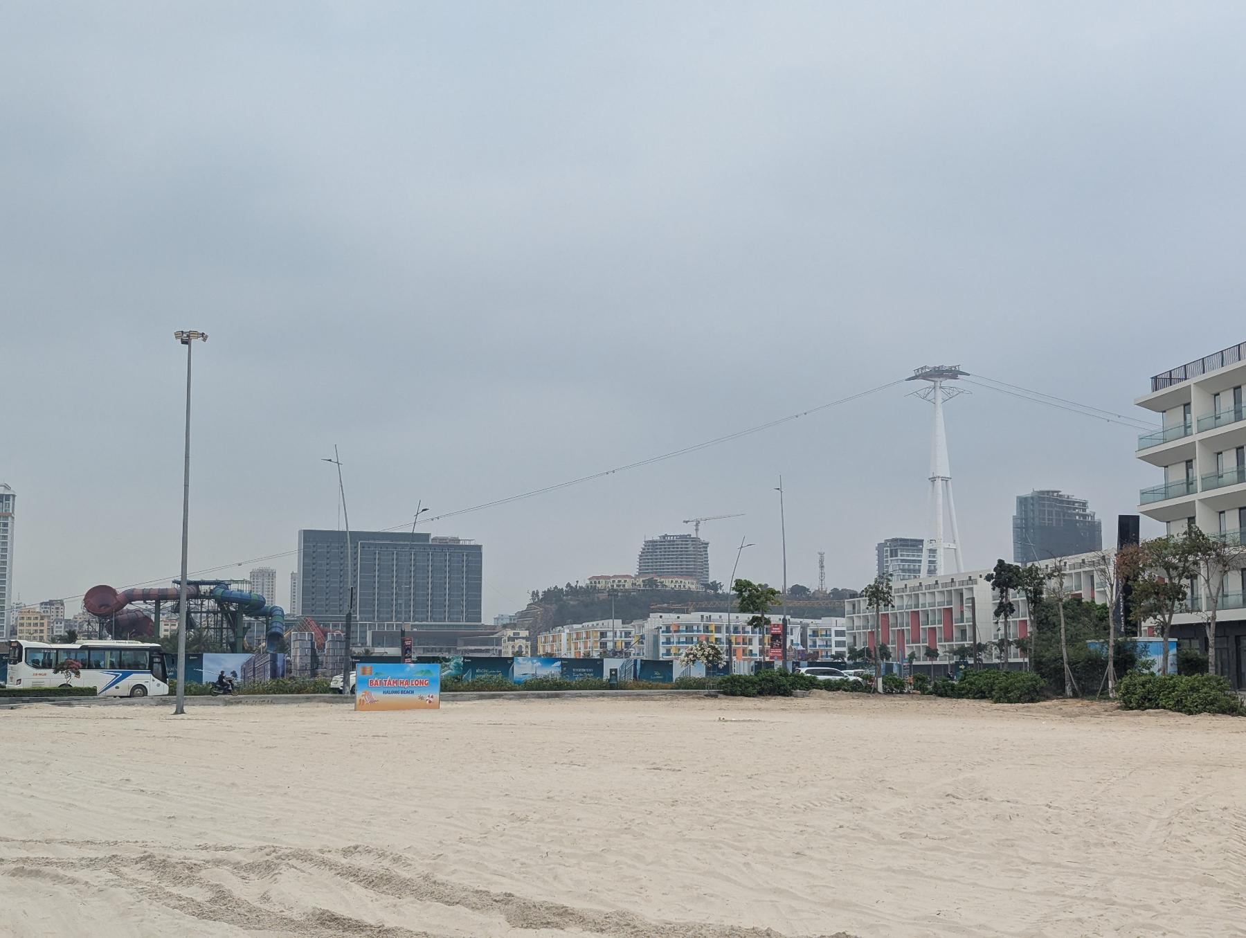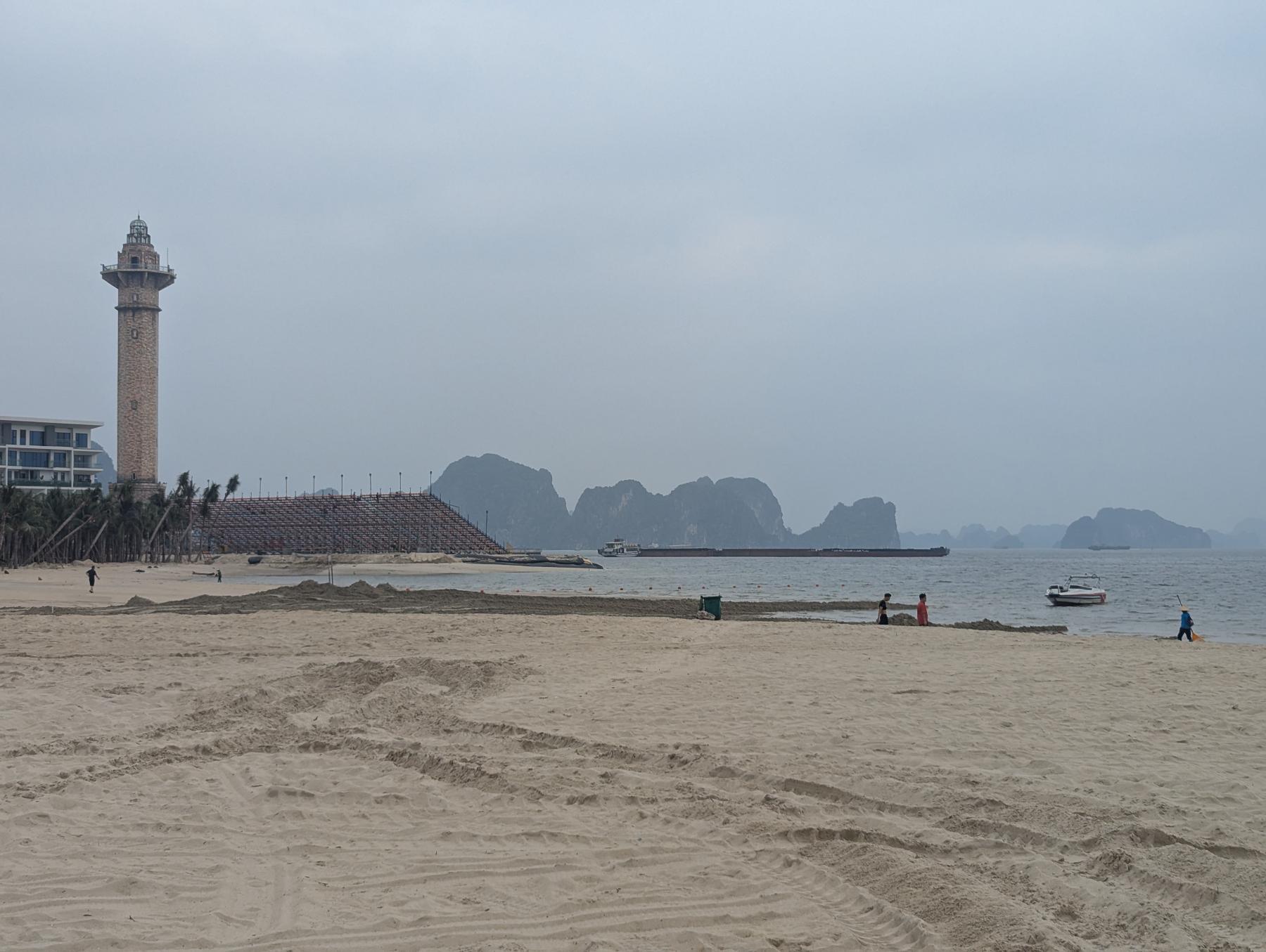 Paseamos por la playa, y el desconcierto por todo cuanto están montando allí, nos saca de cualquier otro pensamiento. Al abrir Google Maps, y ver que me pinta en el agua, aunos 500 metros de la costa ya lo flipo! Y no! No es un error de GPS… hace 2 años que estuvimos en Cat Ba, la otra parte se Ha Long, y tan solo 3 meses después en fotos satélite pudimos ver que habian hecho algo así. Estan ganando terreno al mar para montar mega-complejos hoteleros y aumentar el numero de camas de la zona ad infinitum…